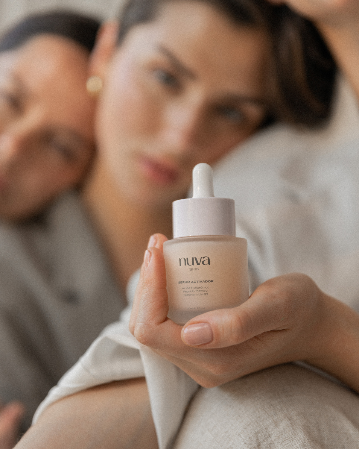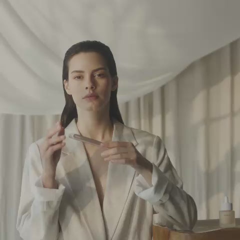 Paso 1: Empieza con la piel limpia y seca aplicando una capa delgada de tu Serum Activador en la zona facial a tratar.